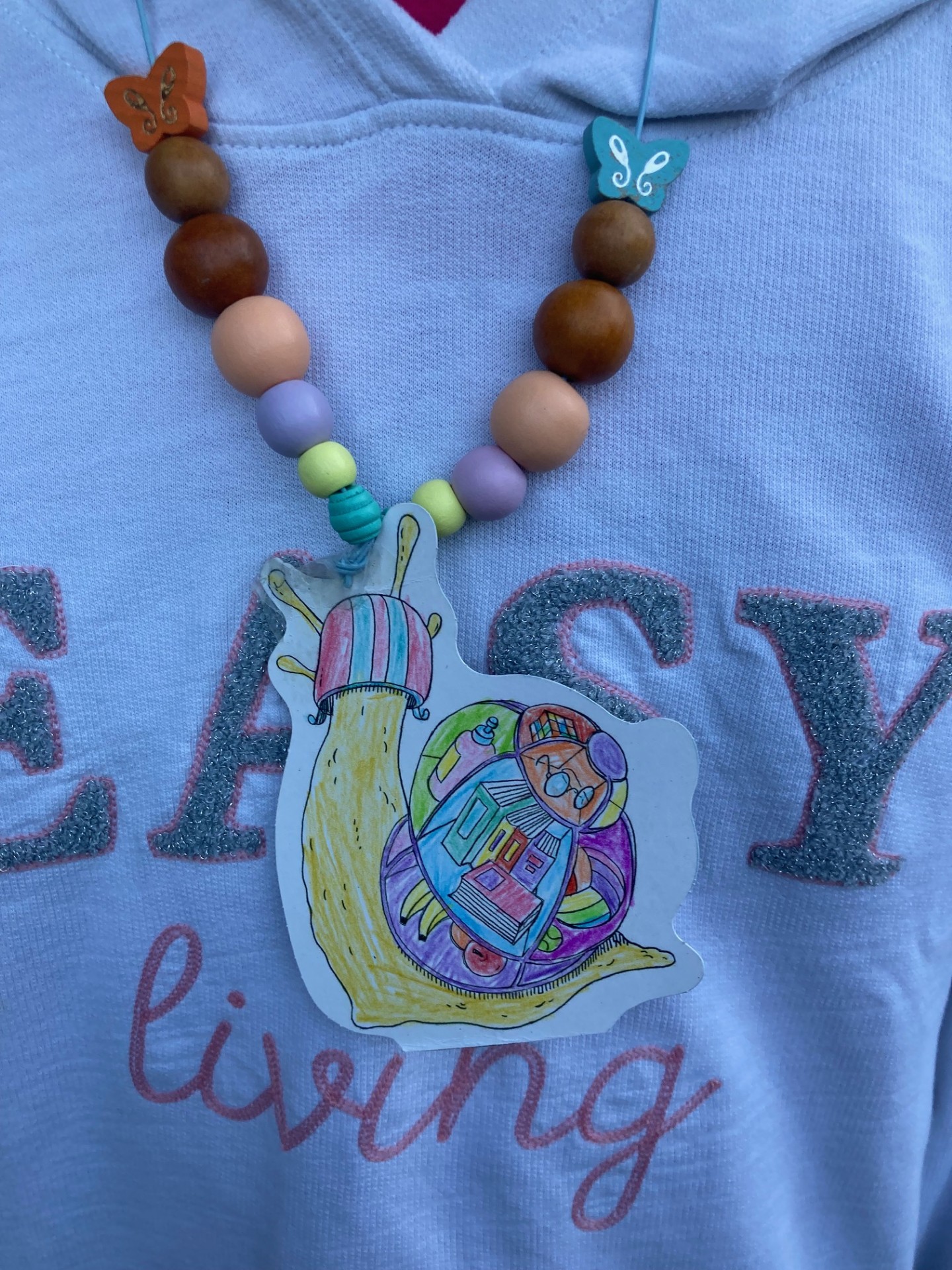 Les troisième, quatrième et cinquième places reviennent à Simone qui nous a fait rire avec sa photo, à Amalyia pour son joli bricolage réalisé avec sa jeune fille au pair, et à Giorgia qui a carrément monté son escargot en collier! Vous recevrez des trousses d’école réalisées à partir des banderoles des éditions précédentes de la Journée internationale à pied à l’école!