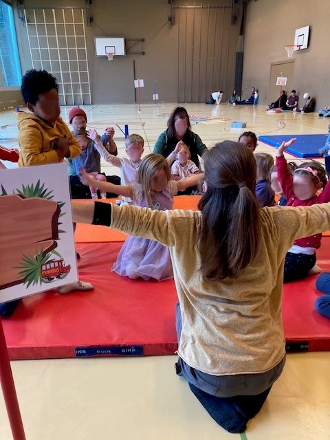 Durant le Minimove du Schönberg, le dimanche 8 février, Marie Wyler a embarqué 85 personnes, enfants et parents, dans une histoire pleine de mouvement. À travers son récit, elle les a fait voyager et vivre une escapade animalière sur le chemin de l’école. La comédienne a raconté avec énergie et sensibilité, emmenant petit·es et grand·es avec elle, mimant singes, papillons, gazelles, éléphants et girafes d’un arrêt à l’autre. Les familles ont ainsi donné vie à l’histoire tout en se dépensant et laissant libre cours à leur imagination.