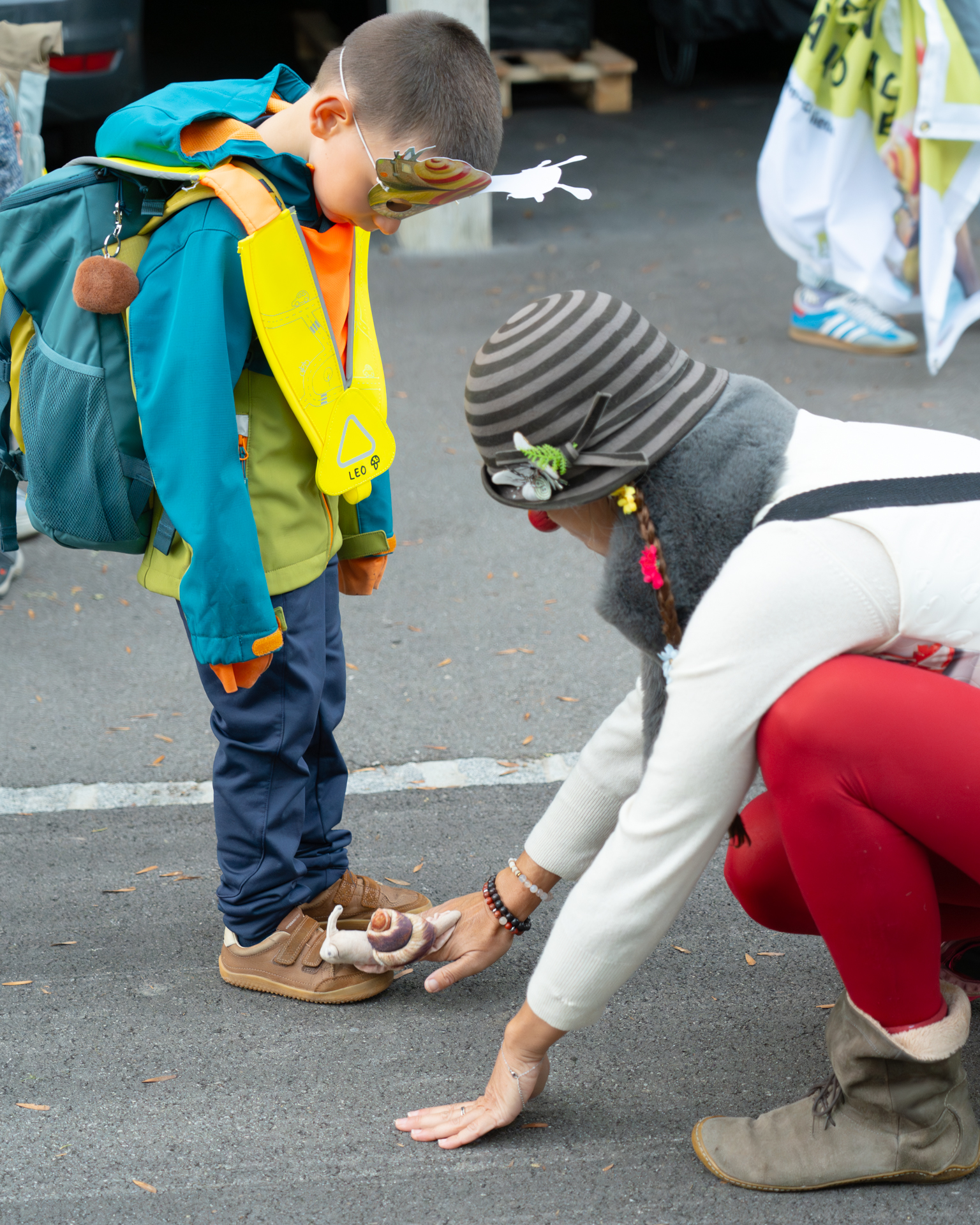 - Les enfants de la ligne Pedibus d’Arbedo (TI) étaient déguisé·es en escargots ! (A noter : la coulée de bave de l’escargot réalisée en tulle colorée. Quel sens du détail !)