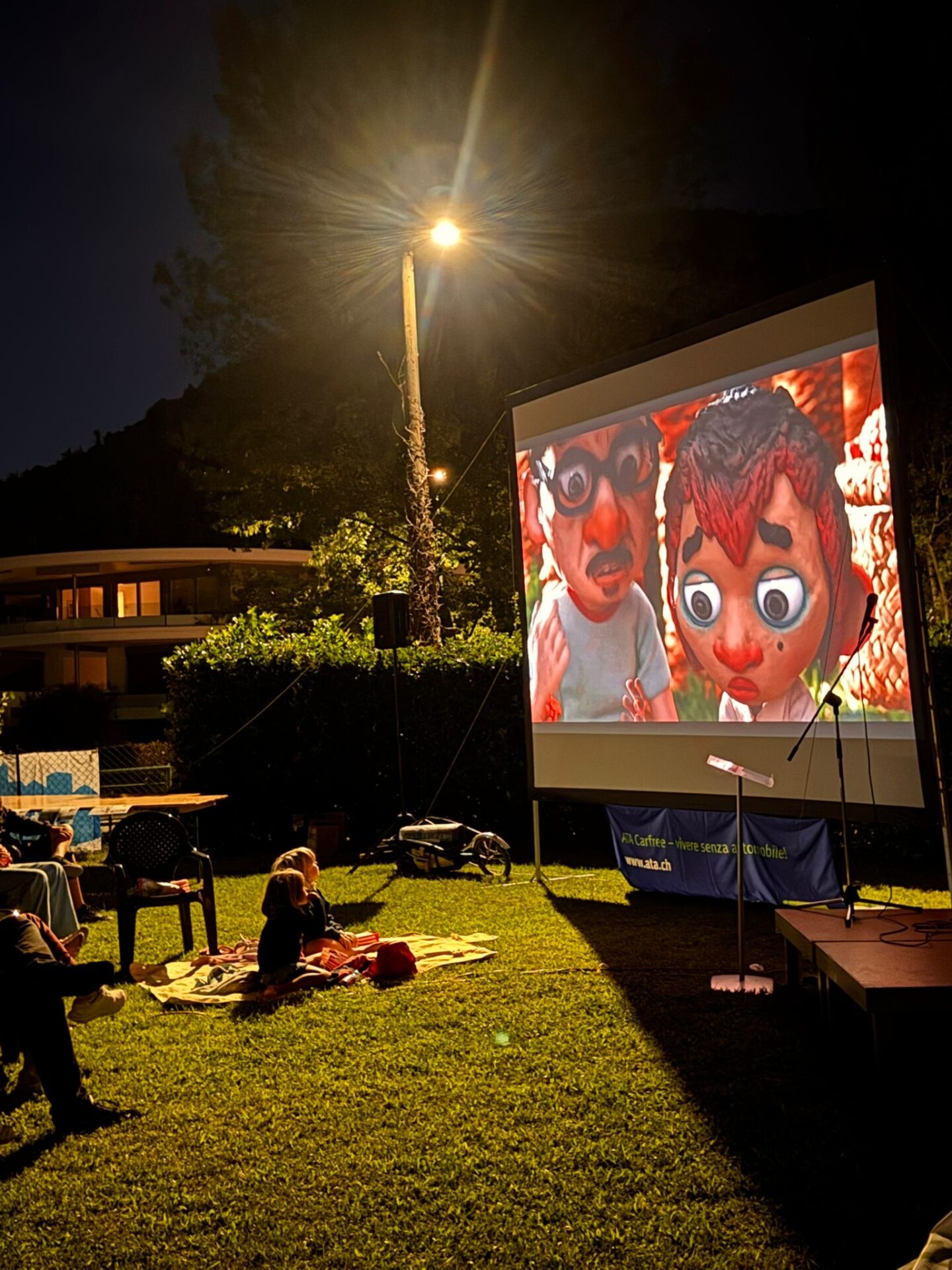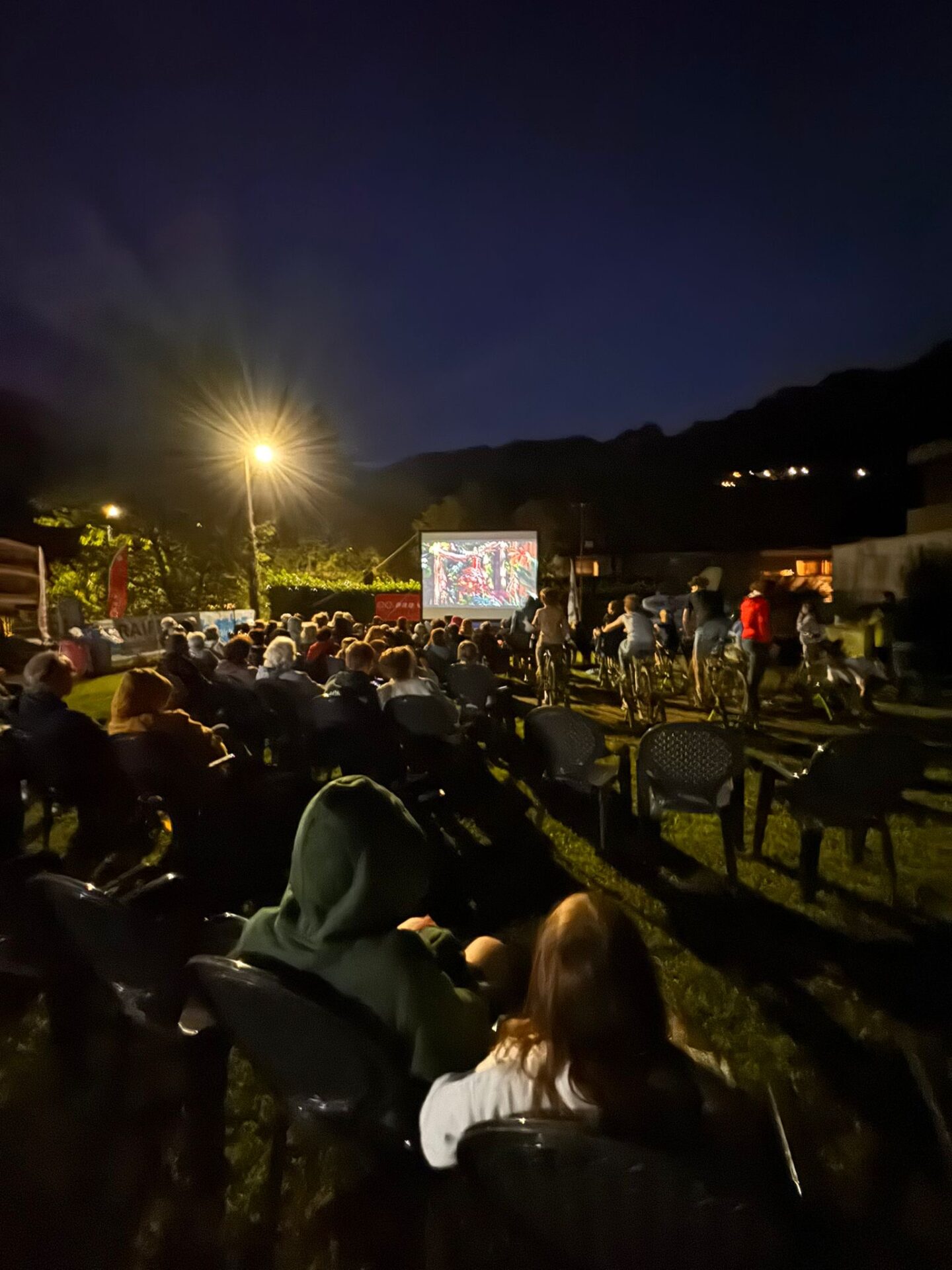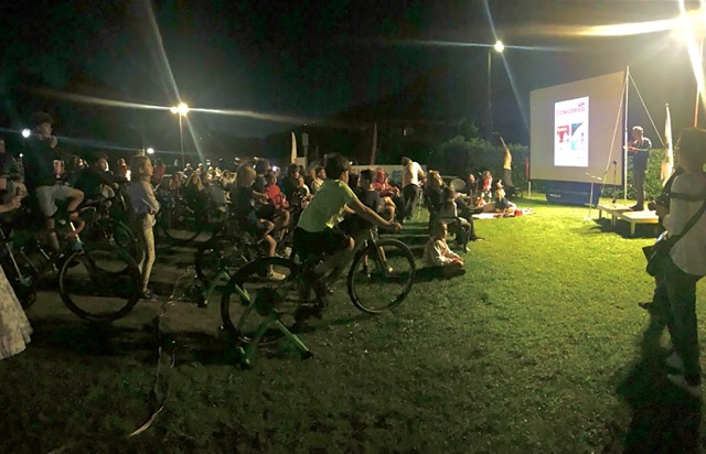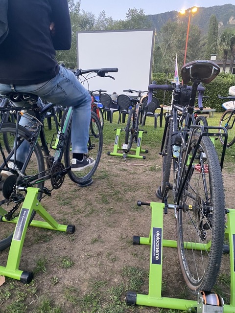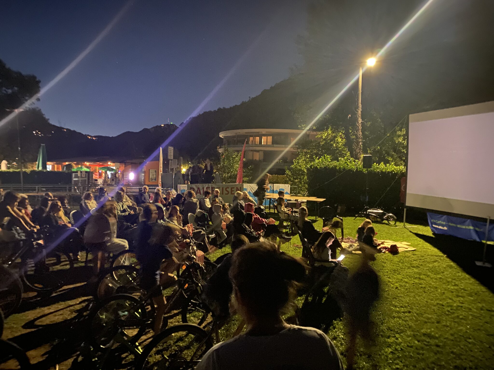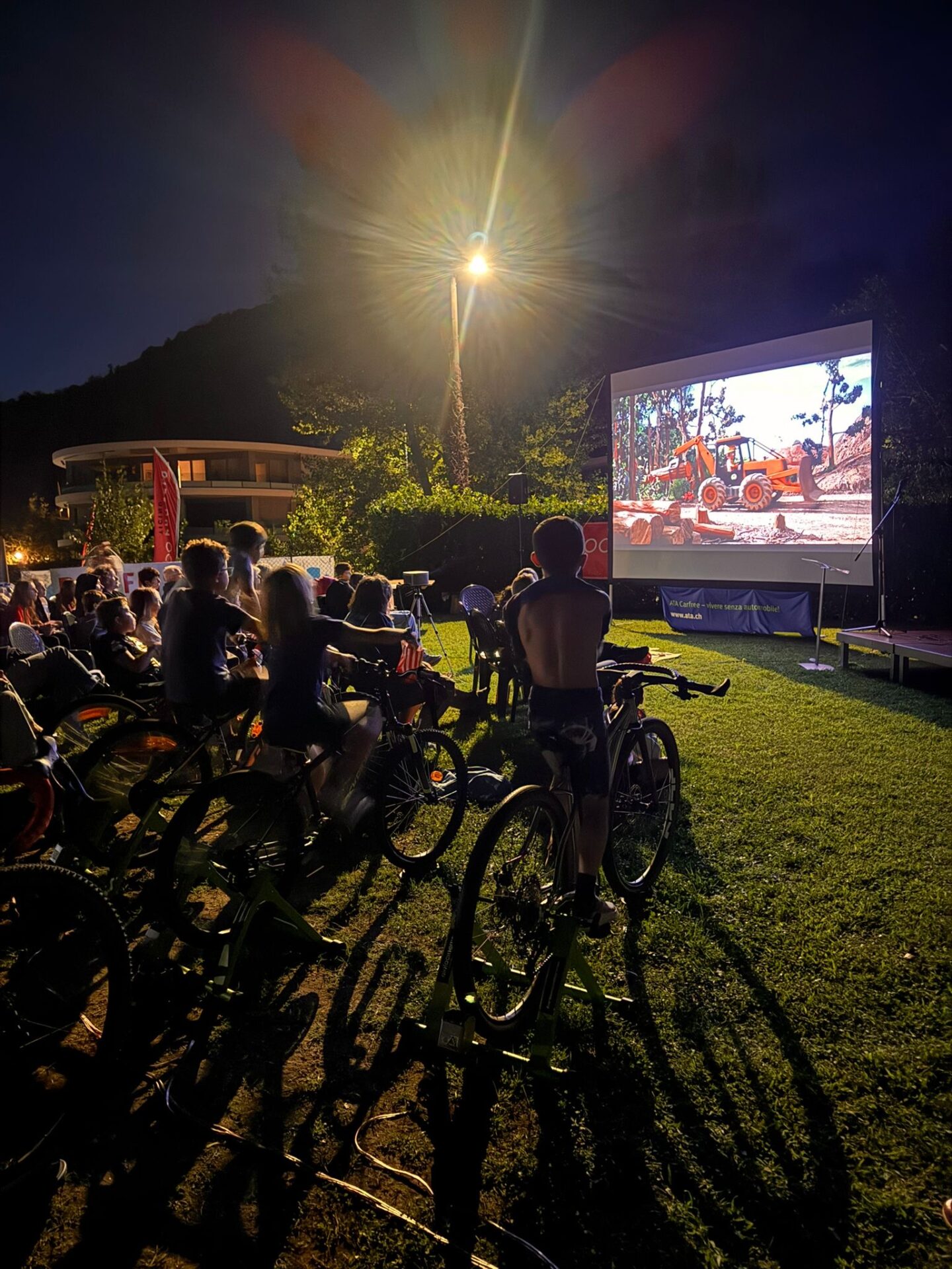 Dopo la serata in Piazza Sant’Antonio a Locarno, le due serate al Lido di Maroggia e nel Parco delle Gole della Breggia hanno richiamato oltre 200 persone, confermando che l’idea del “cinema sotto le stelle, con la bici come motore” non è solo suggestiva, ma concreta.